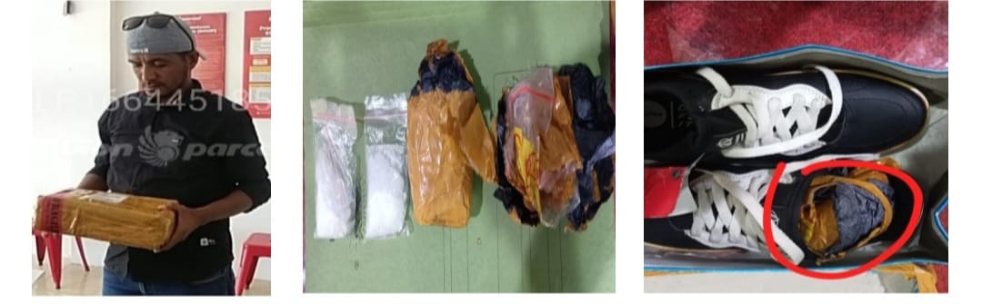 “Pelaku diamankan bersama barang bukti 2 paket Narkotika jenis sabu sebesar 20 gram yang disembunyikan dalam paket berisi sepatu,” ungkapnya.