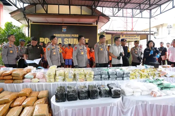 Dalam konferensi pers, Kapolda menggarisbawahi komitmen penuh jajarannya untuk memberantas narkoba sebagai tindak lanjut dari arahan Presiden. “Kami tidak akan memberi ruang sedikit pun bagi peredaran narkoba di Sumatera Utara,” tegas Irjen Pol. Whisnu.