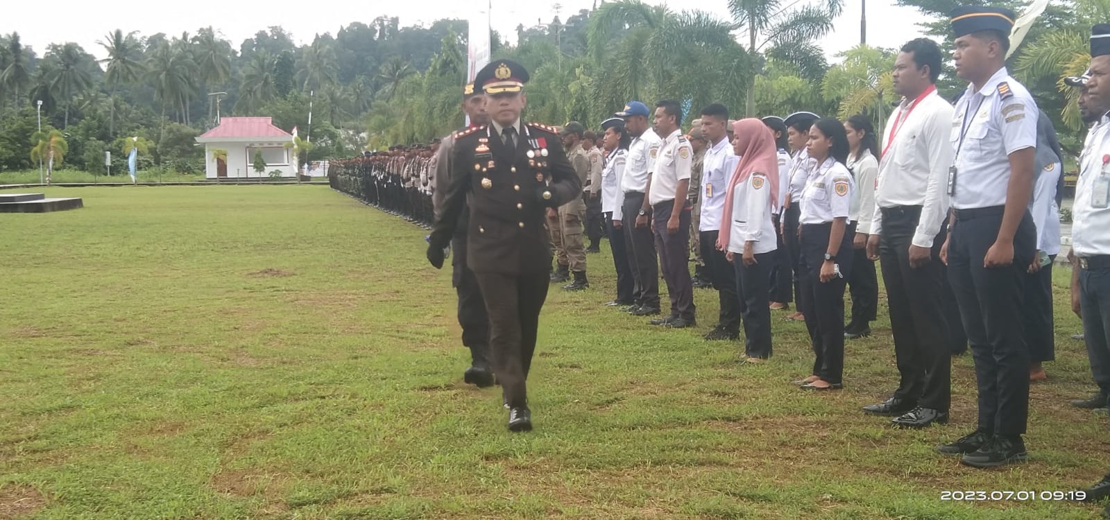MALUKUEXPRESS.COM, Kepolisian Resort Kabupaten Buru Selatan melaksana upacara dalam Rangaka hari bhayakara ke 77 polri persisi untuk negeri duegan tema ,pemilu damai menuju Indonesia maju berlangsung di halaman kantor bupati Bursel, Sabtu (1/7/2023)
