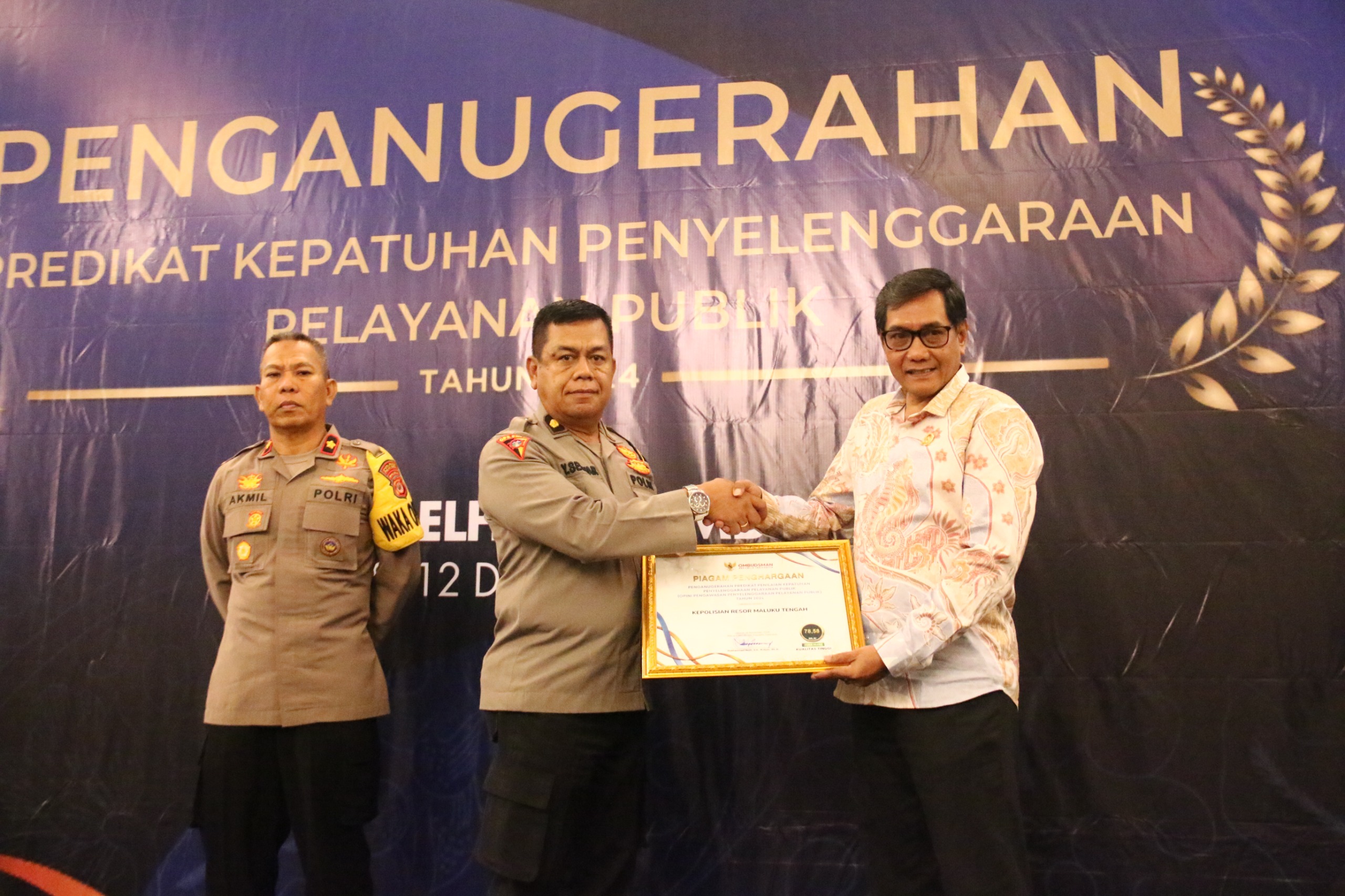 Pada kegiatan itu, Polres Buru dan Polres Malteng mendapatkan penghargaan kepatuhan penyelenggaraan pelayanan publik 2024. Sejumlah instansi terkait juga mendapatkan hal yang sama. Seperti kantor pertanahan kabupaten Seram Bagian Timur, Maluku Tenggara dan Kota Ambon. Pada tingkat pemerintah daerah yang mendapatkan penghargaan yaitu pemerintah Kota Ambon, Kabupaten Maluku Tengah, Kepulauan Aru, dan Kota Tual.