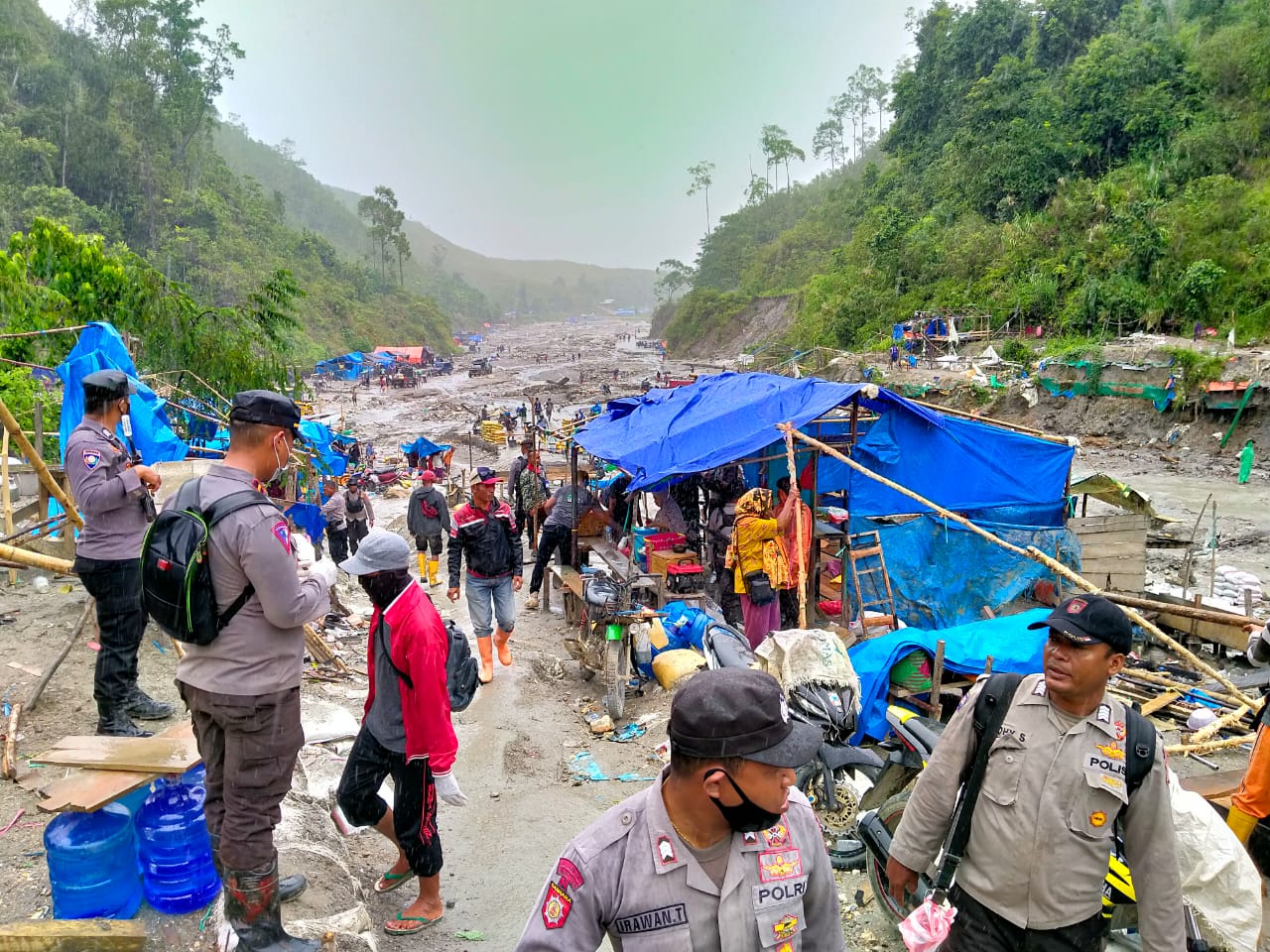 Masyarakat yang masih terlihat juga diminta untuk segera meninggalkan lokasi kali Anahoni. Warga juga diingatkan untuk tidak lagi melakukan aktivitas penambangan emas tanpa izin baik menggunakan bahan kimia ataupun secara manual.