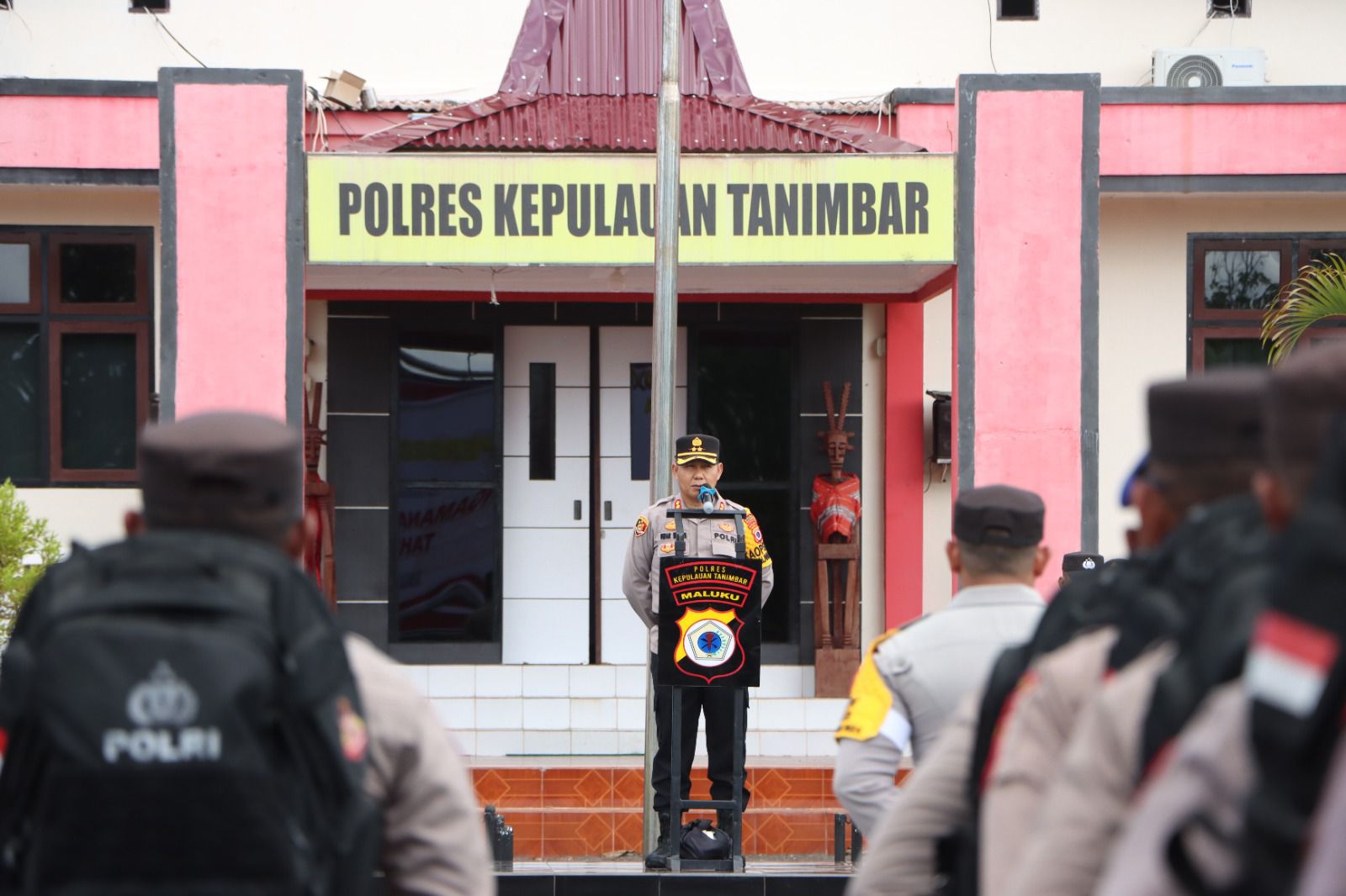 Apel yang dipimpin langsung oleh Kapolres Kepulauan Tanimbar AKBP UMAR WIJAYA, S.I.K., M.H., tersebut turut dihadiri oleh para Pejabat Utama, para Kasat, Perwira Staf, Kapolsek, Danki Brimob, Perwira dan Personel BKO Polda Maluku, hingga seluruh Personel Polres dan Brimob Kompi 3 Batalyon C Pelopor, yang berlangsung di lapangan apel Mapolres Kepulauan Tanimbar.