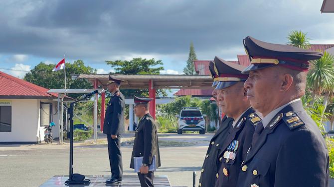 Acara yang berlangsung dengan penuh penghayatan dan rasa hormat ini dipimpin oleh Kapolres yang diwakili Wakapolres Kepulauan Tanimbar Kompol FRIHAMDENI, S.H., S.I.K., M.A., yang dihadiri para Pejabat Utama Polres, Danki Brimob, para Kasat, Kapolsek jajaran, Kasi, Perwira Staf, hingga seluruh Personel Polres Kepulauan Tanimbar dan Brimob Kompi 3 Batalyon C Pelopor.