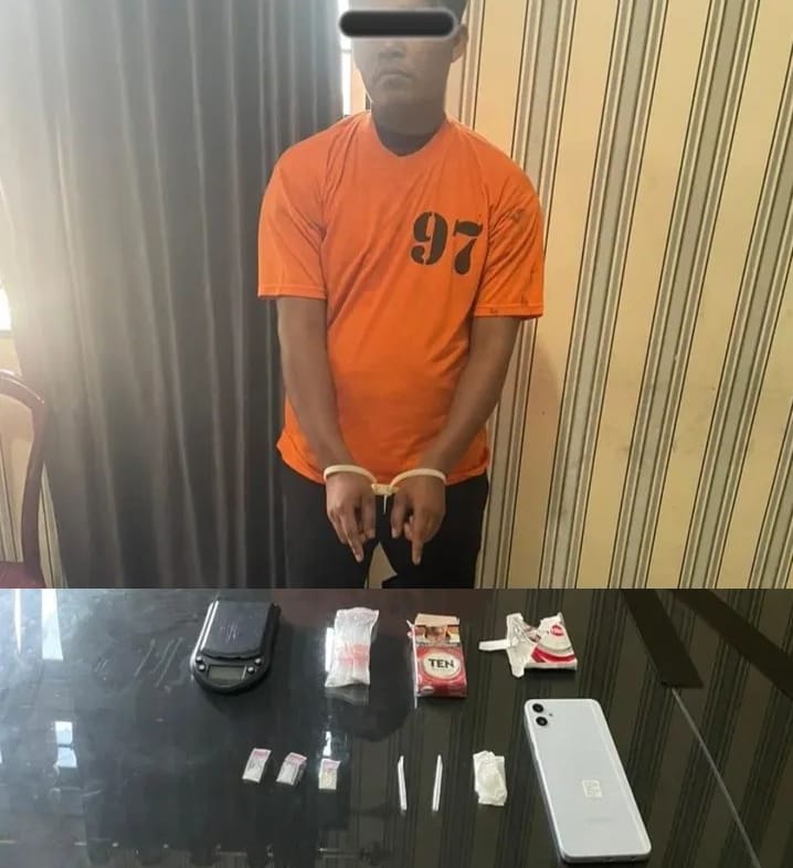 LOS, yang diketahui merupakan residivis dalam kasus serupa, saat di tangkap pria ini tidak berkutik dan petugas menemukan sejumlah barang bukti di lokasi penangkapan. Dari hasil penggeledahan, polisi menyita tiga paket plastik berisi kristal putih diduga shabu dengan berat netto 0,20 gram, satu ball plastik klip merah, dua pipet runcing, satu timbangan digital warna hitam serta dua kotak rokok dan sepotong tisu. Selain itu, petugas juga mengamankan satu unit HP Samsung warna silver milik tersangka.