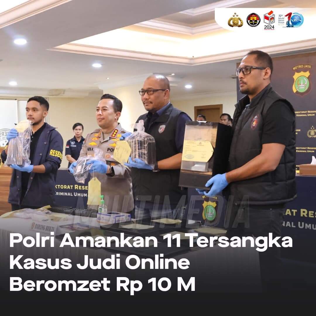MALUKUEXPRESS.COM, Polri melalui Polda Metro Jaya berhasil mengamankan tersangka pelaku judi online di Kabupaten Tangerang, Provinsi Banten. Sebanyak 11 orang tersangka berhasil diamankan Kepolisian dengan peran yang berbeda-beda. Diketahui para tersangka tersebut merupakan operator dari situs judi online bernama CUACA77 yang menawarkan permainan berupa slot, sports, live casino, tembak ikan, lotre atau togel, e-games dan sabung ayam.