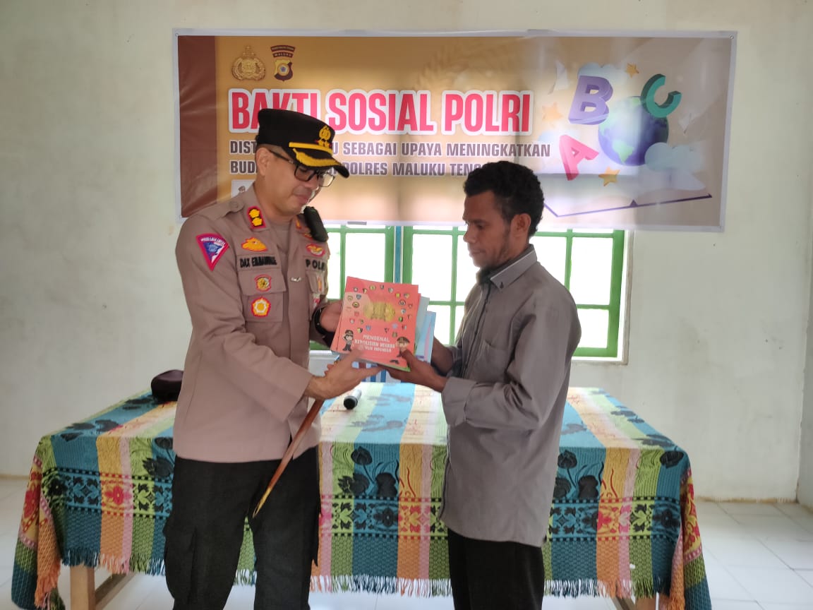 Baksos dengan tema Distribusi buku sebagai upaya meningkatkan budaya literasi Polres Malteng ini, dilaksanakan pada dua Kecamatan, yakni di Dusun Simalouw KM 9 Negeri Sepa Kacamatan Amahai dan Kelurahan Lesane Kecamatan Kota Masohi, kamis (21/9/2023).