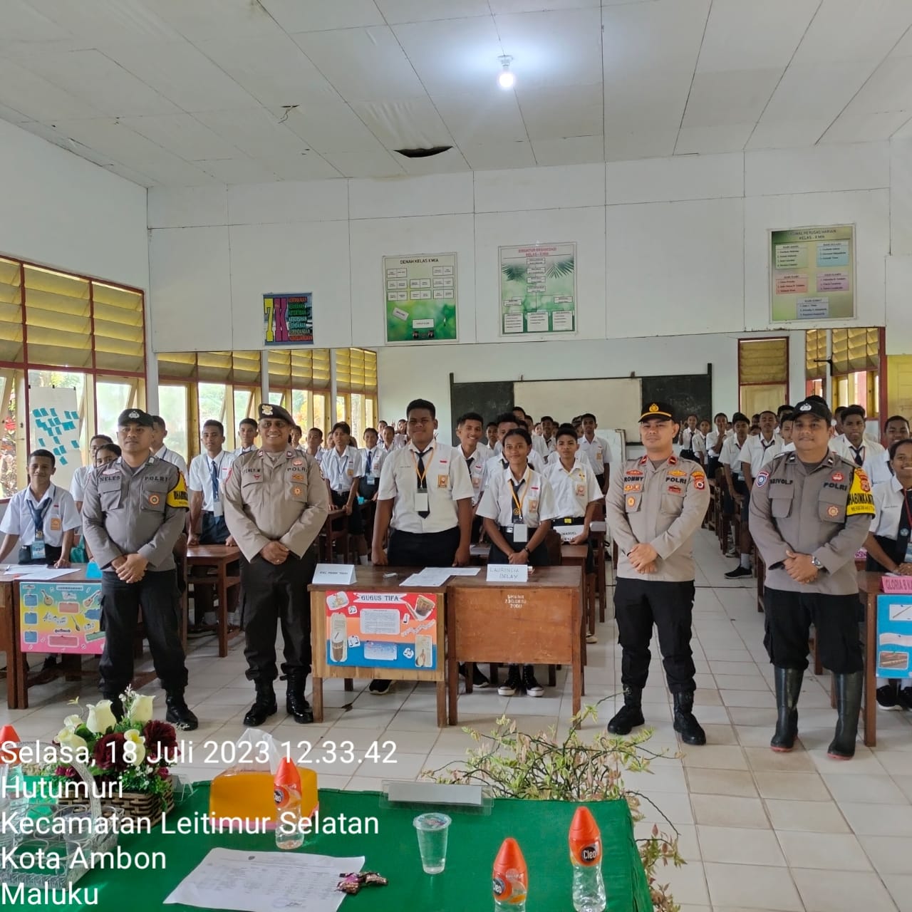 MALUKUEXPRESS.COM, Kapolsek Leitimur Selatan IPDA ROMMY PRADIPTA, SH didampingi Kanit Samapta Polsek Leitimur Selatan AIPTU I. MANUPUTTY, S.Sos, Bhabinkamtibmas Negeri Hutumuri AIPDA B. PATTISELANO dan Bhabinkamtibmas Negeri Naku BRIPKA N. BERHITU, melaksanakan kegiatan Basudara Manise (Safari Kamtibmas) di SMA Negeri 8 Ambon beserta kepala sekolah para dewan Guru dan para Siswa/siswi yang baru mendaftar, pada Selasa 18/07/2023 pukul 10.30 Wit.
