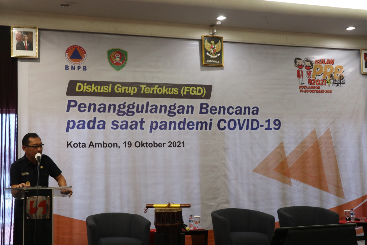 FGD Penanggulangan Bencana pada saat Pandemi Covid-19 yang dilaksanakan secara luring dan daring pada 19 Oktober 2021 ini merupakan salah satu rangkaian kegiatan peringatan bulan PRB yang diselenggarakan oleh BNPB di Kota Ambon selama dua hari, 19 sampai 20 Oktober 2021.