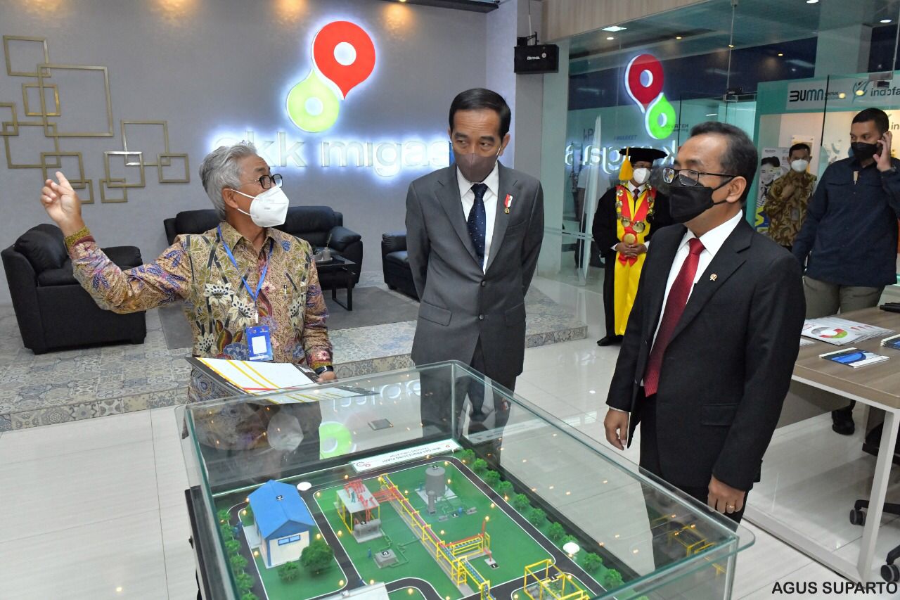 SURAKARTA– Presiden Joko Widodo mengunjungi Migas Corner di SoloTechnopark (STP), Surakarta Jawa Tengah. Kunjungan Presiden Jokowi ke Migas Corner sekaligus melihat dari dekat Pameran Dies Natalis Universitas Sebelas Maret (UNS) ke 46. Migas Corner merupakan tempat pelatihan bagi pekerja di Industri hulu migas yang didirikan oleh SKK Migas dan KKKS.