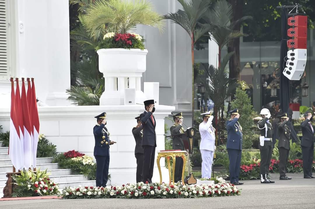 Malukuexpress.com, Presiden Republik Indonesia Ir. H. Joko Widodo memimpin upacara Peringatan HUT ke-76 TNI yang digelar secara sederhana dan terbatas dengan menerapkan standar protokol kesehatan yang ketat, bertempat di Istana Negara, Jakarta Pusat, Selasa (5/10/2021).