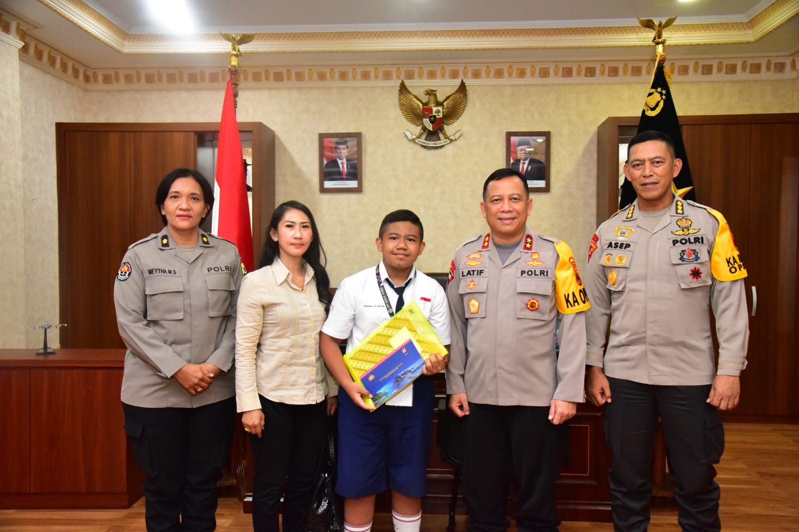 Malukuexpress.com, POLDAMALUKU- Kepala Kepolisian Daerah Maluku, Irjen Pol Drs. Lotharia Latif, SH.,M.Hum, memberikan apresiasi kepada Gennaro Alexandro Suitela, siswa SMP Katolik Ambon, peraih juara 2 Lomba Menulis Surat Untuk Kapolri Tingkat SMP se-Indonesia.