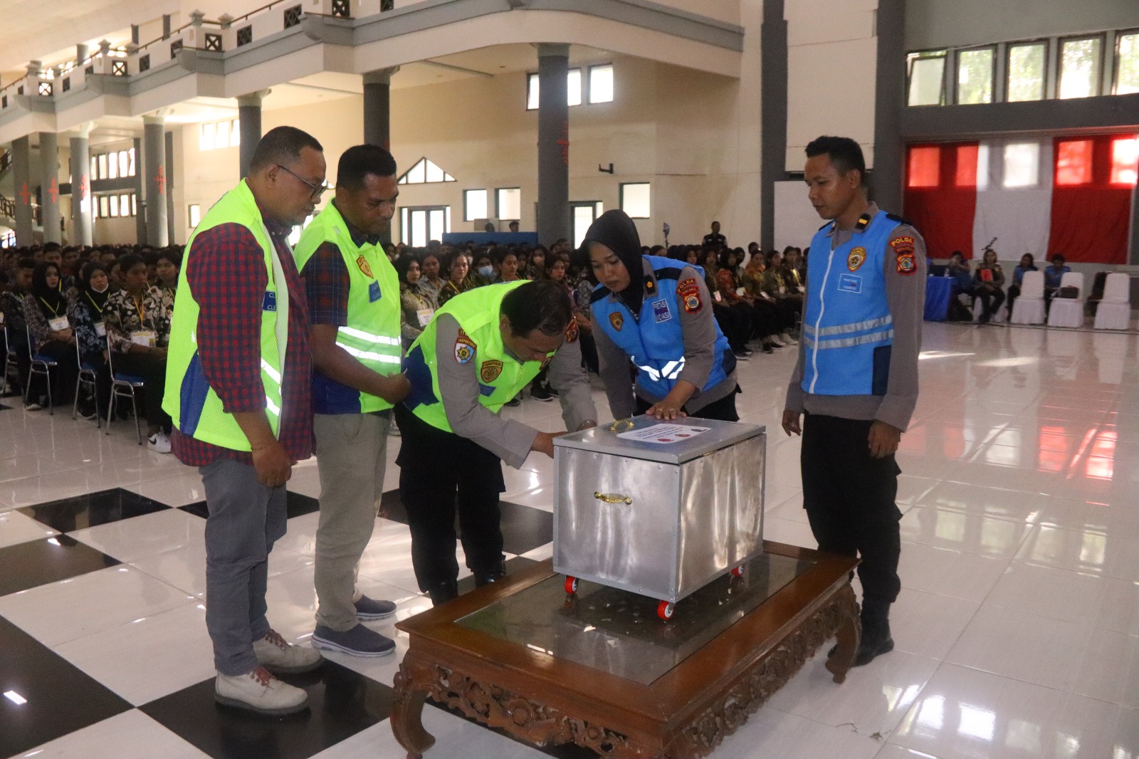 juga mengajak para peserta agar dapat kembali pulang ke rumah dengan tertib, serta selalu menjaga keselamatan diri di jalan.