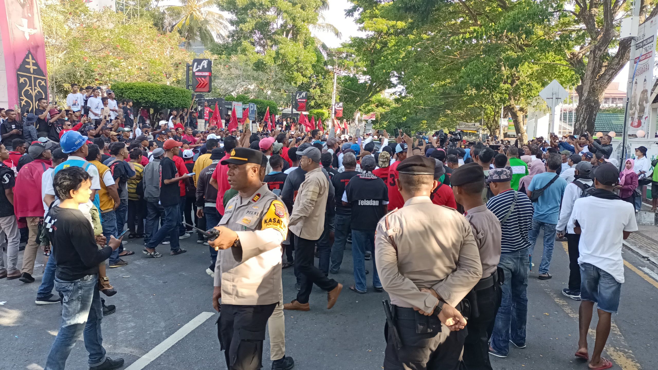 “Hari ini tim satgas OMB Polda Maluku yang diback up dari personel Polresta Ambon melakukan pengamanan kampanye yang dilakukan Capres 03 pak Ganjar Pranowo di Ambon,” kata Kasatgas Opsda Polda Maluku, Kombes Pol Dostan Siregar SIK.
