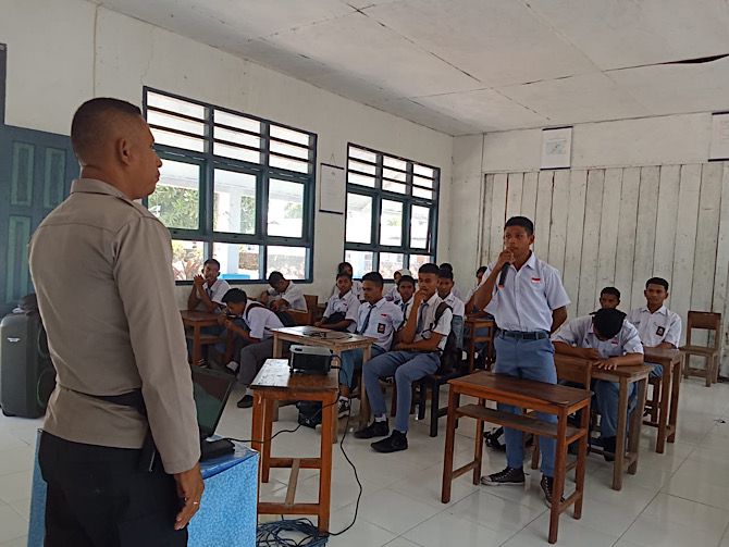 Sosialisasi ini dipimpin oleh Ps. Kanit Binmas Polsek Wuarlabobar Polres Kepulauan Tanimbar Aipda T. FATBINAN didampingi Anggota Polsek Wuarlabobar yang berlangsung di SMA Negeri 6 Kepulauan Tanimbar di Desa Wunlah, Kecamatan Wuarlabobar, Kabupaten Kepulauan Tanimbar, Selasa , (22/10/24).