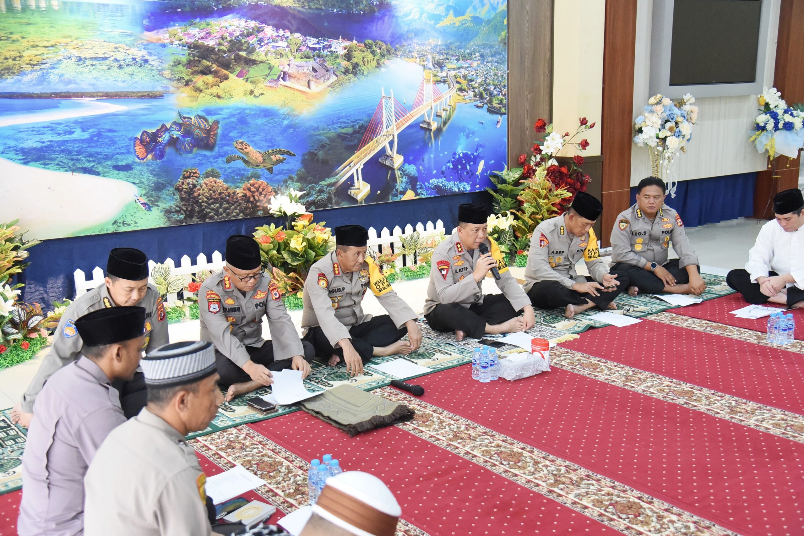 Ambon,Malukuexpress.com-Kapolda Maluku Inspektur Jenderal Polisi Drs. Lotharia Latif SH.,M.Hum bersama para pejabat utama Polda Maluku dan anggota yang beragama Islam melaksanakan pengajian bersama, menyambut datangnya bulan suci Ramadan 1445 Hijriah.