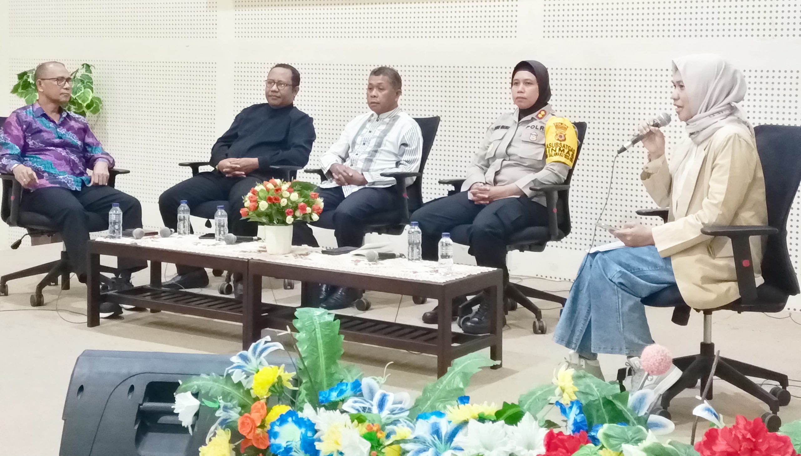 Kegiatan yang menghadirkan empat orang narasumber ini dilaksanakan di Aula Kantor RRI Ambon, Jumat (8/3/2024). Para narasumber diantaranya Sosiolog Maluku DR. Paulus Koritelu, S.Sos.M.Si, Wadir Binmas Polda Maluku AKBP Rosita Umasugi Sik, Direktur Rekonsiliasi Perdamaian Maluku DR. Abidin Wakano S.Ag, M.Ag dan Wakil Sekretaris Imum MPH Sinode GPM Pdt Dr. Rudy Rahabeat, M.Si.