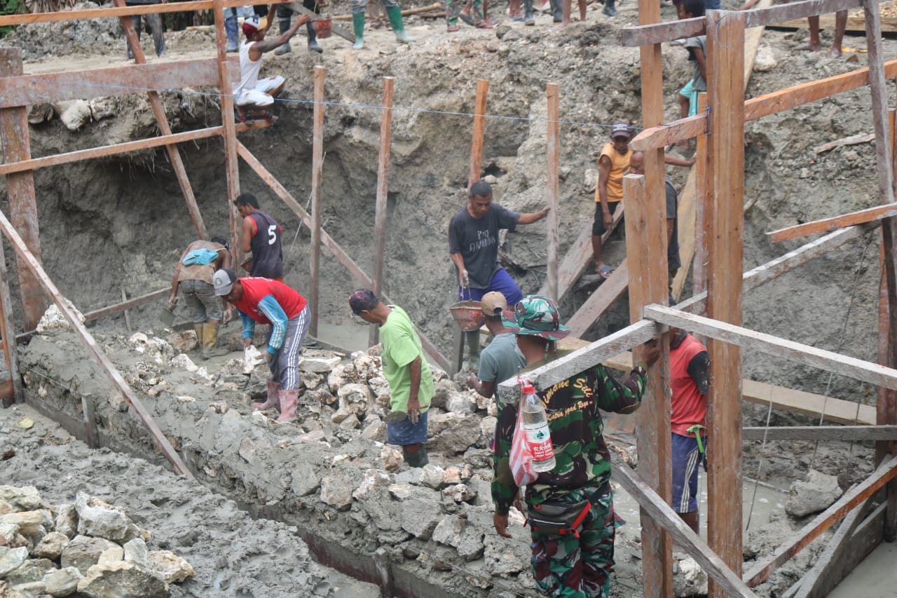 MALUKUEXPRESS.COM, Atubul Dol – Salah satu sasaran fisik TNI Manunggal Membangun Desa ( TMMD ) 117 tahun 2023 di Desa Atubul Dol, Kecamatan Wertamrian, Kabupaten Kepulauan Tanimbar, yaitu pembuatan Jembatan Beton. Jembatan yang dulunya hanya terbuat dari kayu saat ini progres pembuatan jembatan beton sudah mencapai 15 %, Rabu (19/07/2023).
