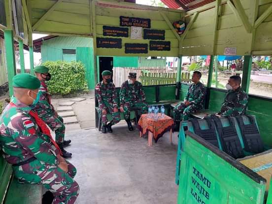 Rombongan tim yang tiba dipos kotis langsung disambut oleh Dansatgas Yonif 734/Sns dan Perwira Seksi Teritorial yang memaparkan kegiatan yang telah dilaksanakan selama 8 bulan