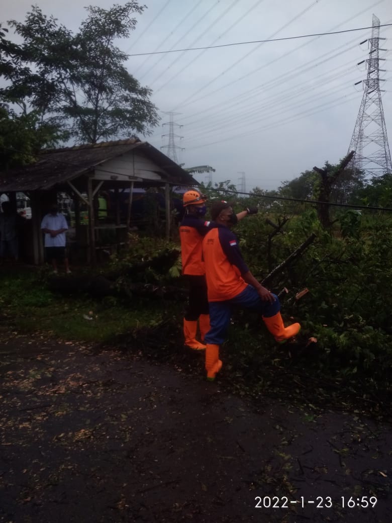 Penanganan darurat juga menyasar pada pembersihan pohon tumbang. Sejumlah pohon roboh di beberapa titik, baik di sekitar pekarangan rumah warga maupun di ruang publik. Petugas BPBD telah membersihkan ranting-ranting maupun pohon yang tumbang akibat angin kencang sore itu.