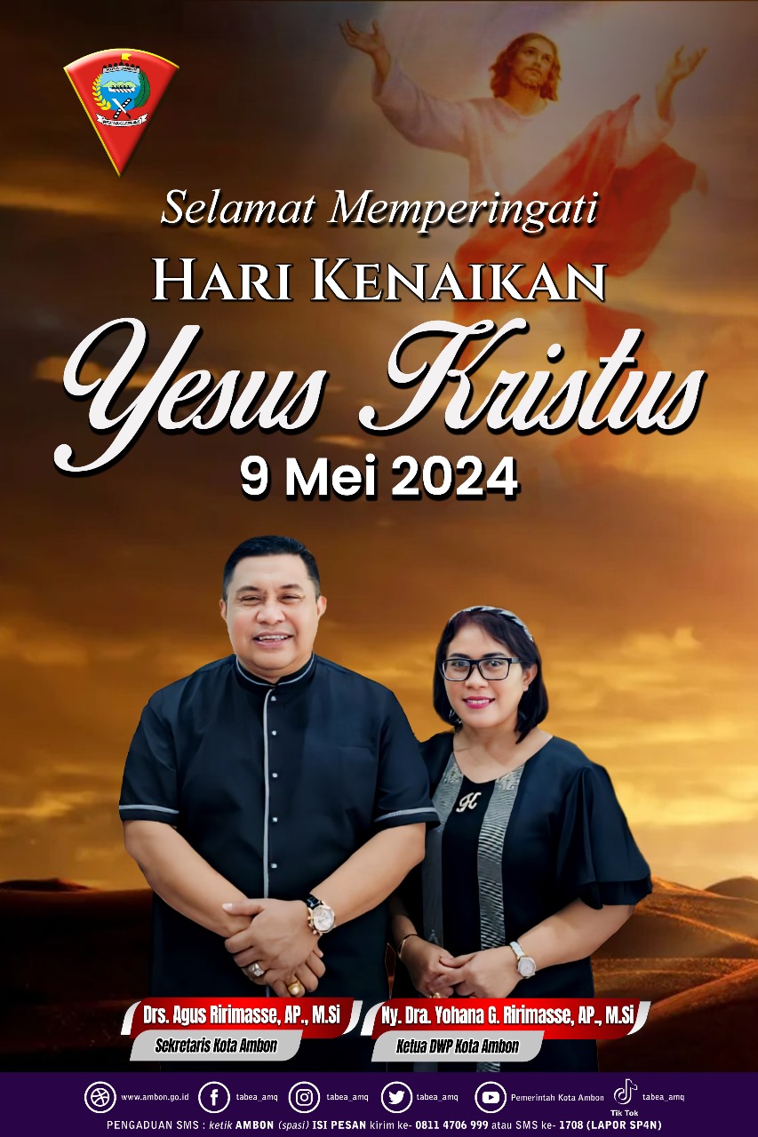 Sekkot Ambon Mengucapkan Selamat Memperingati Kenaikan Yesus Kristus Tahun 2024 adminMei 9, 2024Januari 7, 2025219 Dilihat Post Views: 219 Pos terkaitGerak Cepat Polisi, 2 Terduga Pelaku Penikaman Ketua DPD II Golkar Malra Berhasil Diamankan Polres Maluku TenggaraAMGPM Oikumene Imanuel OSM Resmi Dari Gedung Baru Menuju Gerakan Perubahan NyataDanrem 151/Bny Pimpin Sertijab Kasrem 151/BnyTim “Dara Laut” Kowal Kodaeral IX Meriahkan Opening Ceremony Salam Fest 2026Perkuat Pengamanan Perairan Timur, Pesawat Patroli Maritim TNl AL P-8301 Tiba di AmbonKONI Ambon Diingatkan: Jangan Sekadar Formalitas, Atlet Berbakat Harus Jadi Prioritas