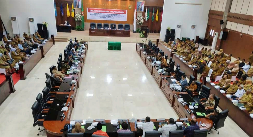 Ambon,Malukuexpress.com-Plt. Sekretaris DPRD Provinsi Maluku Fharatun Samal membacakan Penetapan Rancangan Peraturan Daerah Provinsi Maluku tahun 2025 sebanyak 12 buah.