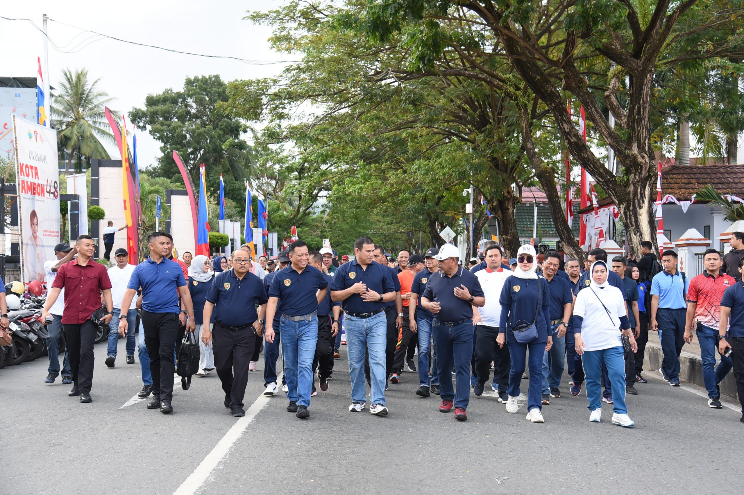 MALUKUEXPRESS.COM, Dalam rangkaian peringatan Hari Olahraga Nasional (Haornas) ke-40 Tahun 2023, Pangdam XVI/Pattimura Mayjen TNI Syafrial, PSC., M.Tr.(Han)., mengikuti olah raga bersama Forkopimda Provinsi Maluku di Lapangan Merdeka Ambon, Sabtu (9/9/2033) pagi.