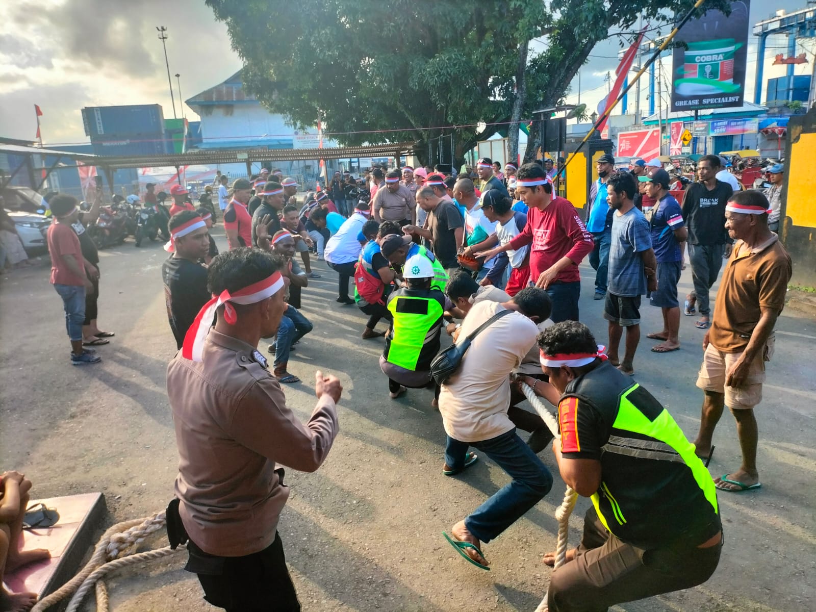 Kemeriahan tersaji saat dilaksanakannya berbagai perlombaan yang berlangsung di halaman Markas Polsek KPYS, Jalan Yos Sudarso, Kota Ambon, Kamis (17/8/2023).