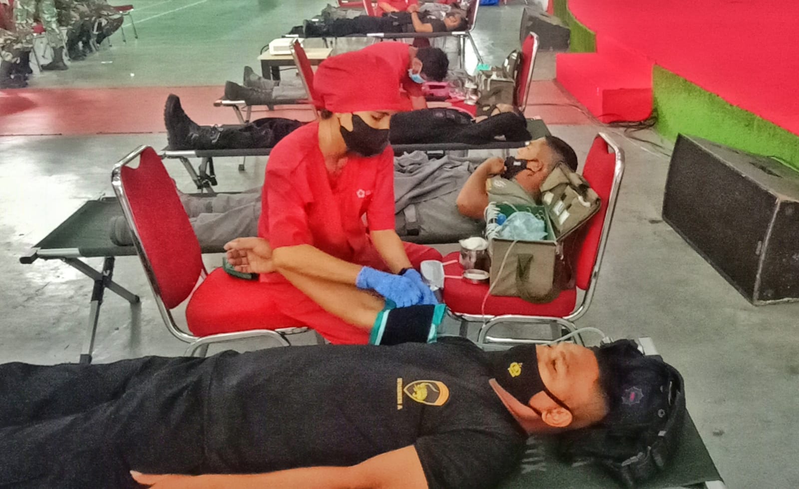 Donor darah dalam rangka HUT TNI ke-76 kali ini melibatkan berbagai instansi diantaranya dari Lantamal IX (40 Personel), Raider 733 (15 Personel), Sat Brimob Polda Maluku (15 personel), Bakamla (11 Personel) dengan Penanganan 8 Personel PMI Kota Ambon dan dibantu 7 tenaga medis Dinas kesehatan Lantamal IX. Kegiatan Donor Darah berjalan aman dan lancar. (DISPEN LANTAMAL IX).