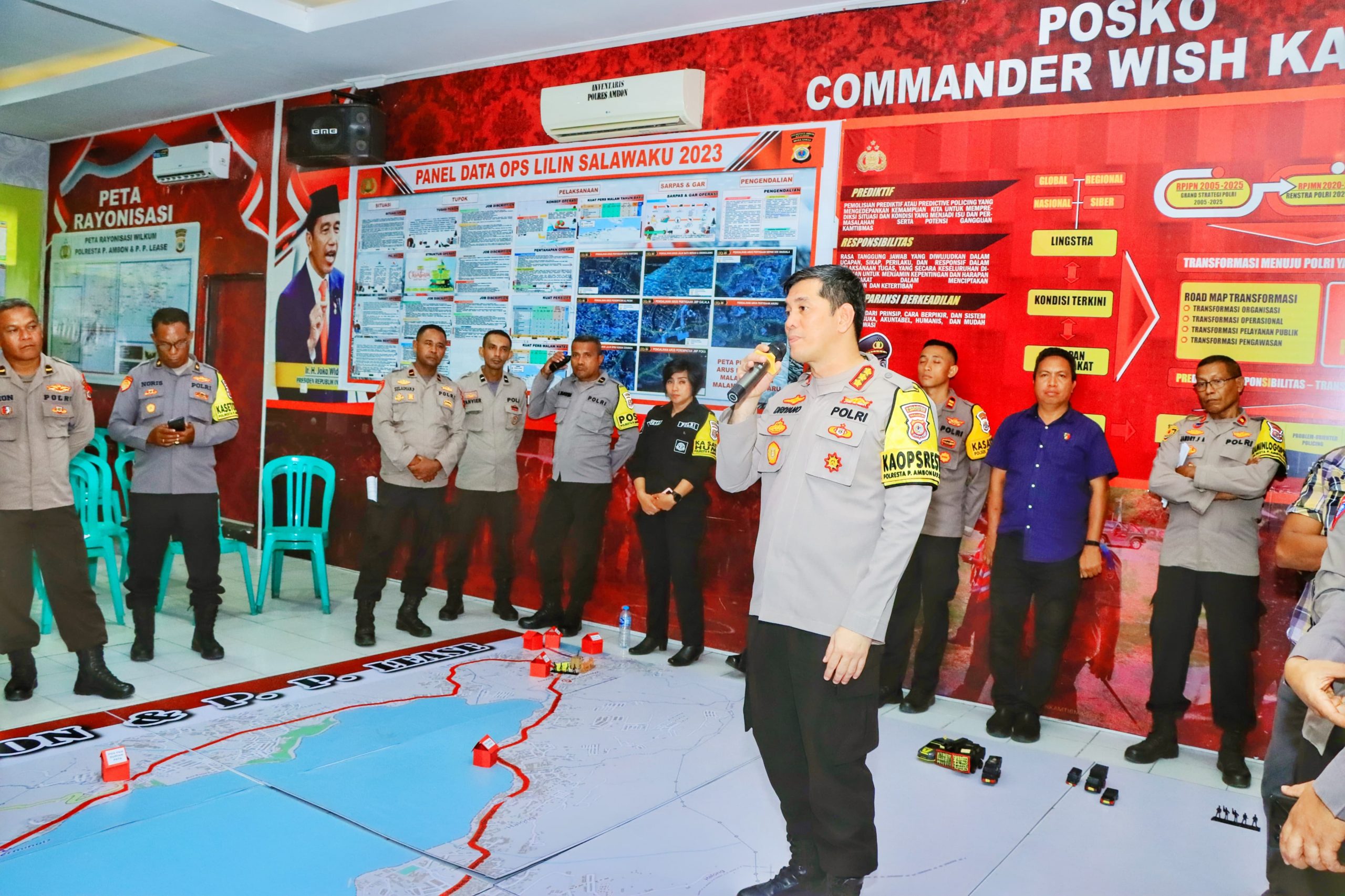Ambon,Malukuexpress.com- Bertempat di Aula Prima Polresta Ambon telah dilaksanakan Simulasi Tactical Floor Game (TFG) Dalam Rangka Kesiapan Kelancaran pergantian Malam Tahun Baru 2024 yang dipimpin langsung oleh Kapolresta Ambon Kombes Pol Driyano Andri Ibrahim S.H., S.I.K.