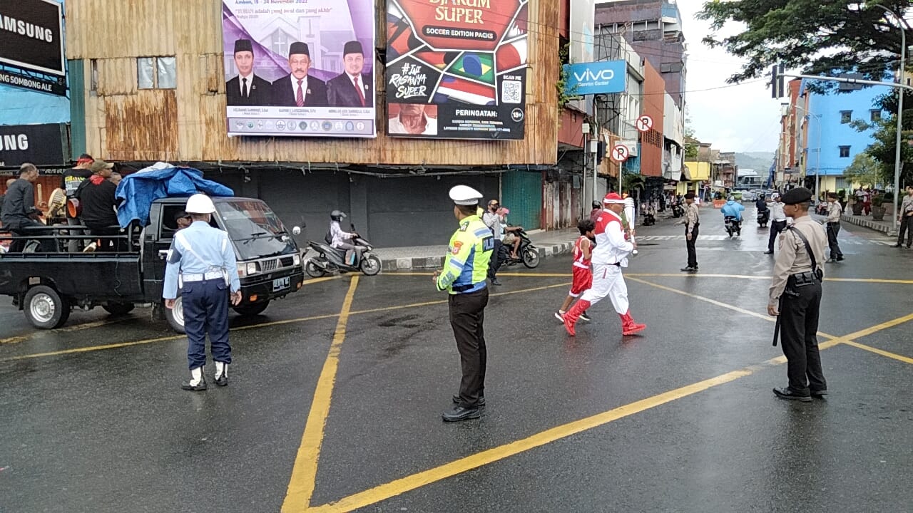 Selain mengamankan lokasi lomba, aparat kepolisian juga mengamankan sejumlah ruas jalan yang dianggap rawan terjadinya kemacetan lalu lintas di kota Ambon.