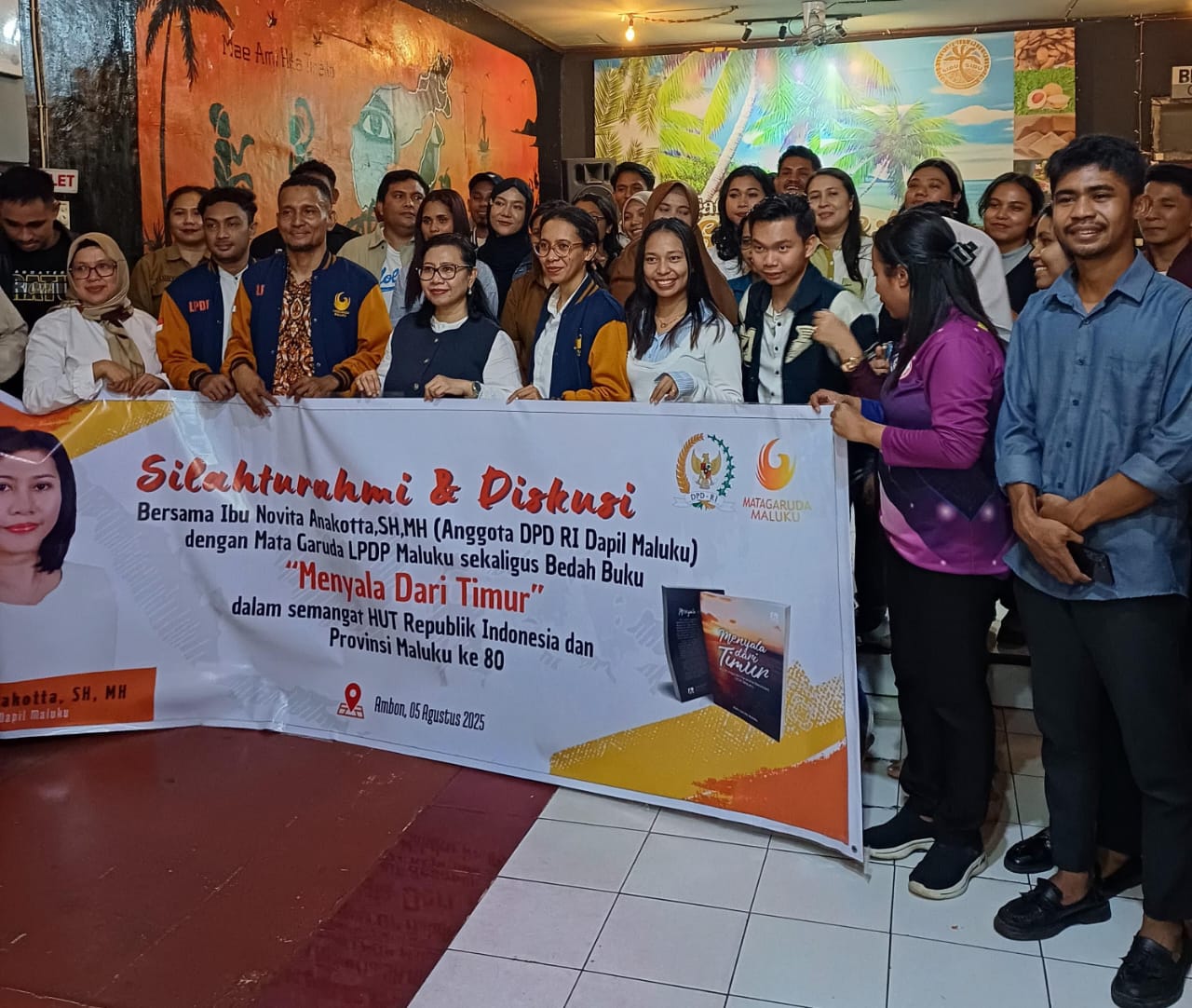 MALUKUEXPRESS COM, Ambon, 5 Agustus 2025 — Dalam rangka mempererat komunikasi dan sinergi antara pemangku kebijakan dan generasi muda intelektual, Anggota DPD RI Dapil Maluku, Ibu Novita Anakotta, S.H., M.H., menggelar silaturahmi bersama Mata Garuda LPDP Maluku di Café Sibu-Sibu, Ambon.