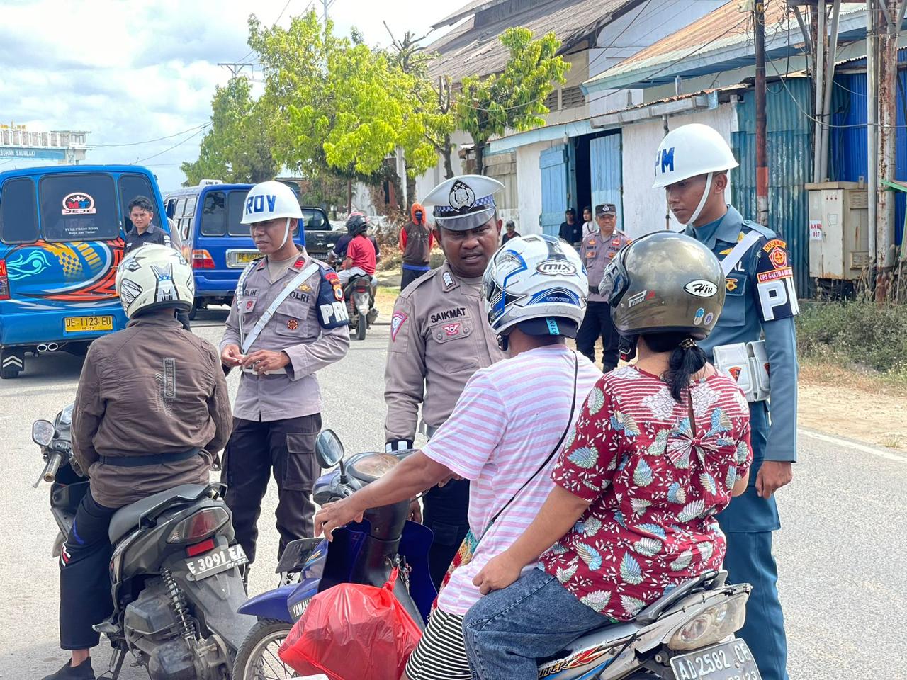 Adapun beberapa pelanggaran lalu lintas yang ditegur secara Kasat Mata oleh Petugas, diantaranya pengendara sepeda motor yang berboncengan lebih dari satu orang, tidak mengenakan TNKB, melanggar rambu-rambu lalu lintas, pengendara yang masih dibawah umur, penggunaan Helm SNI baik kepada Pengendara maupun Penumpang hingga penggunaan Handphone saat berkendara.