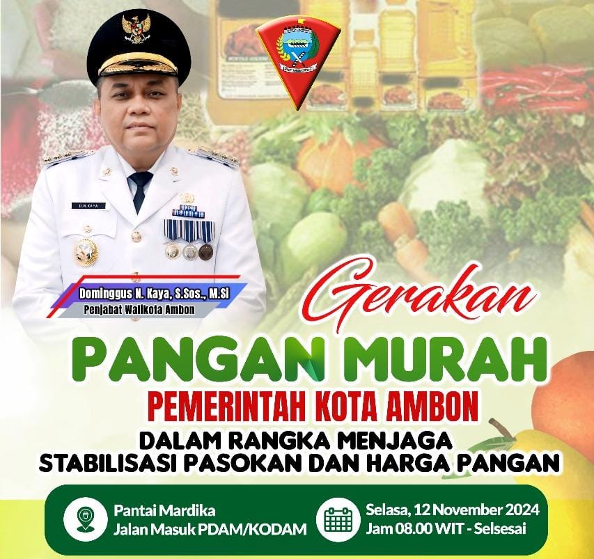 MALUKUEXPRESS.COM, AMBON, – Guna stabilisasi pasokan dan harga pangan, Pemerintah Kota (Pemkot) Ambon akan kembali melaksanakan program Gerakan Pangan Murah, Selasa (12/11/24) besok.