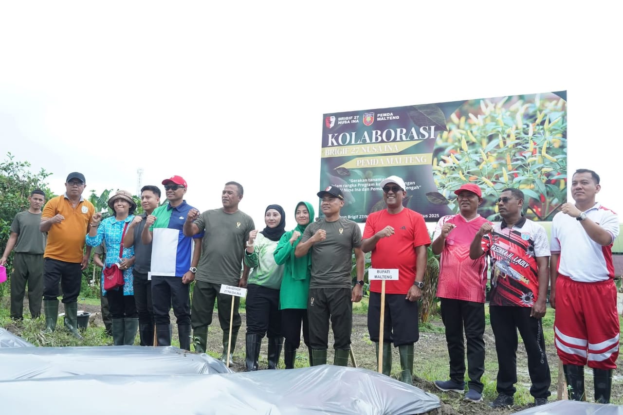 Malukuexpress.com, Masohi -Bupati Maluku Tengah Zulkarnain Awat Amir, bersama-sama dengan jajaran Forum Koordinasi Pimpinan Daerah (Forkopimda) Kabupaten Maluku Tengah melakukan kegiatan penanaman cabai di lahan yang berada di lingkungan Brigif 27/Nusa Ina, Jumat (22/8/2025).