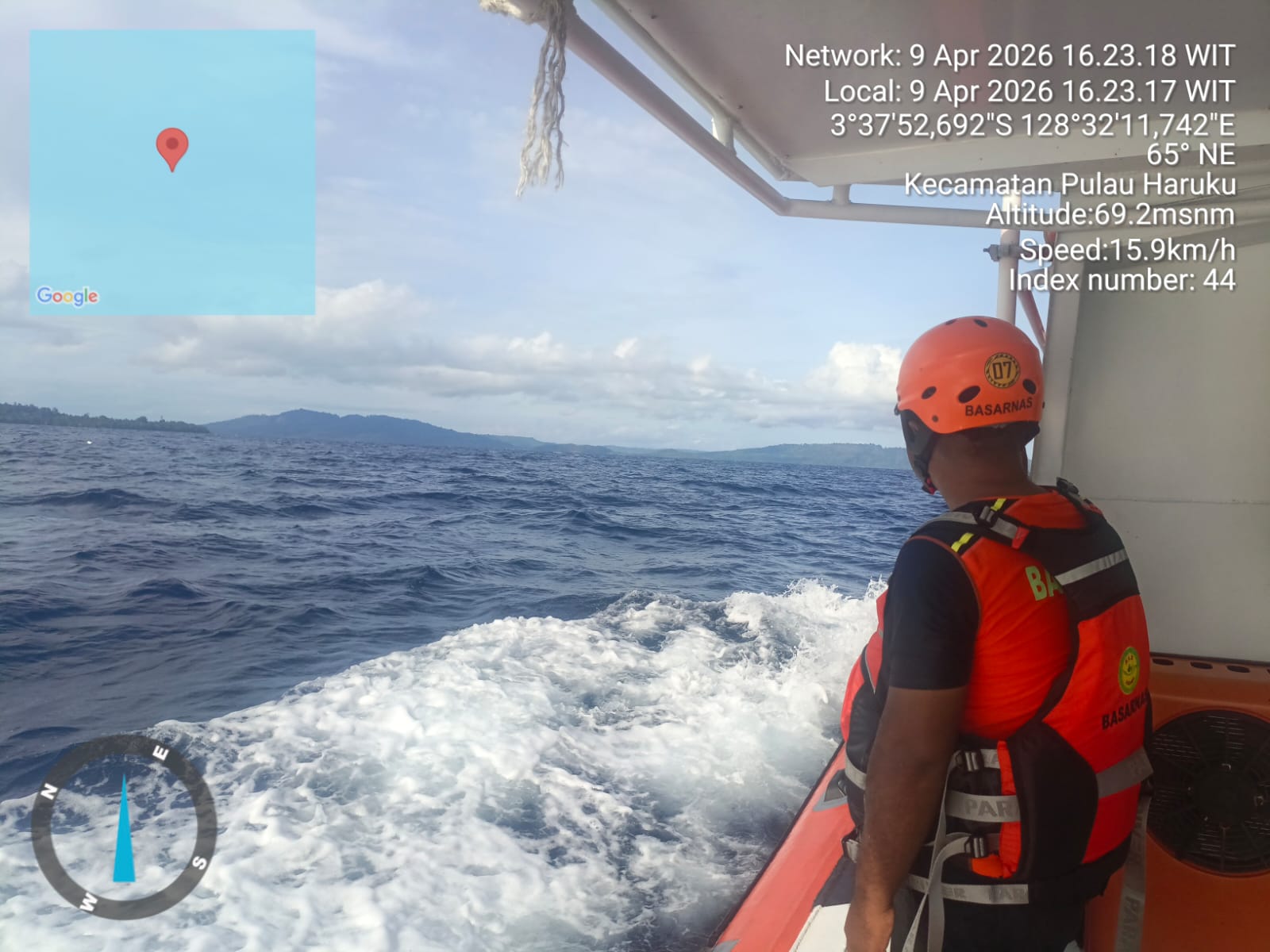 Pukul 12.30 WIT, Tim Rescue Kansar Ambon dikerahkan menggunakan RBB menuju lokasi kejadian pada Koordinat 3°35’14.15″S – 128°37’8.64″E, Jarak ± 46 NM dan Heading 82,89° arah Timur dari Dermaga BRIN Ambon.