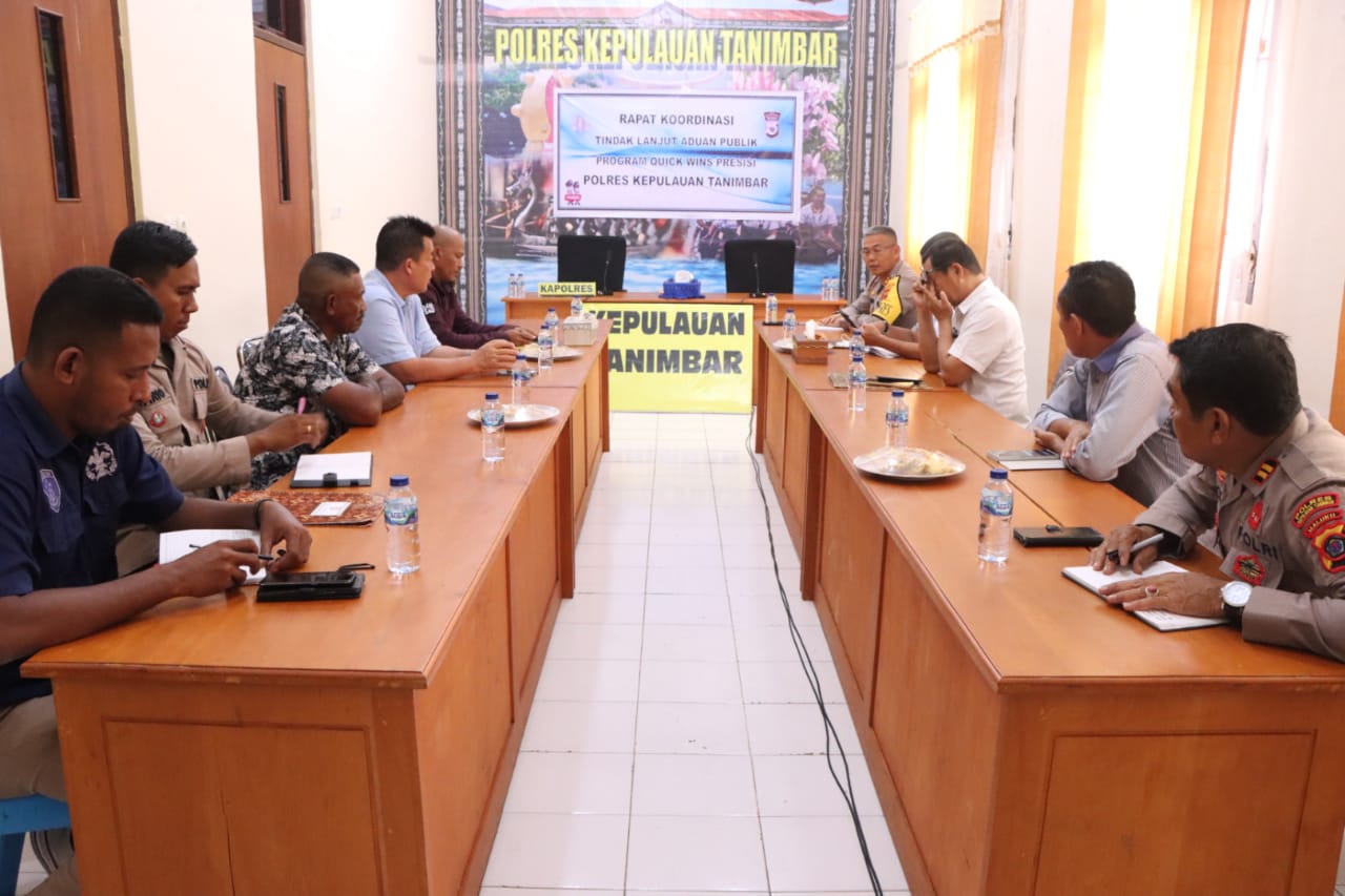 Malukuexpress.com, Polda Maluku, Polres Kepulauan Tanimbar, Rapat Koordinasi bersama pihak Pemerintah daerah dan Intansi terkait lainnya sebagai bentuk tindak lanjut terhadap Aduan Publik, digelar diruang Rapat dipimpin langsung Kapolres Kepulauan Tanimbar AKBP Umar Wijaya, S.I.K., didampingi Kasat Intelkam dan Kasat Binmas selaku Penyelenggara kegiatan, Kamis (24/11).