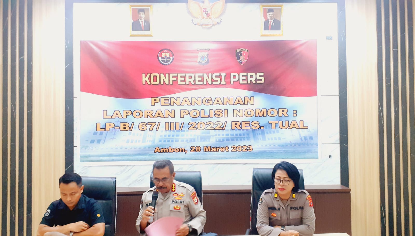 Direktur Reskrimum Polda Maluku, Kombes Pol Andri Iskandar, didampingi Kabid Humas Kombes Pol M. Rum Ohoirat, dan Kaur Penmas AKP Imelda Haurissa, dalam konferensi pers di Mapolda Maluku, Selasa (28/3/2023), mengatakan, Surat Pemberitahuan Penghentian Penyidikan (SP3) telah dikeluarkan pada 27 Maret 2023.