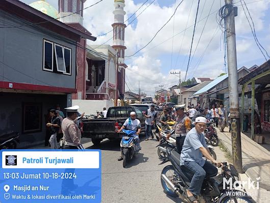 Selain melaksanakan pengamanan maupun pengaturan, Petugas pun lakukan Patroli pada seputaran area Masjid. Hal ini tentunya dilakukan untuk memastikan kelancaran arus lalu lintas sekaligus menjaga Kondusifitas pada area seputaran Masjid, guna mencegah timbulnya gangguan Kamtibmas.