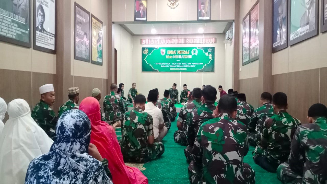 MALUKUEXPRESS.COM, Blitar – Kodim 0808/Blitar menggelar peringatan Isra’ Mi’raj Nabi Muhammad SAW Tahun 1445 H / 2024 M, yang diikuti oleh anggota Kodim 0808 baik Perwira, Bintara, Tamtama dan PNS, bertempat di Aula Shodancho Soeprijadi Jl. A. Yani No. 06 Kel/Kec. Kepanjenkidul Kota Blitar, Selasa (13/2/2024).