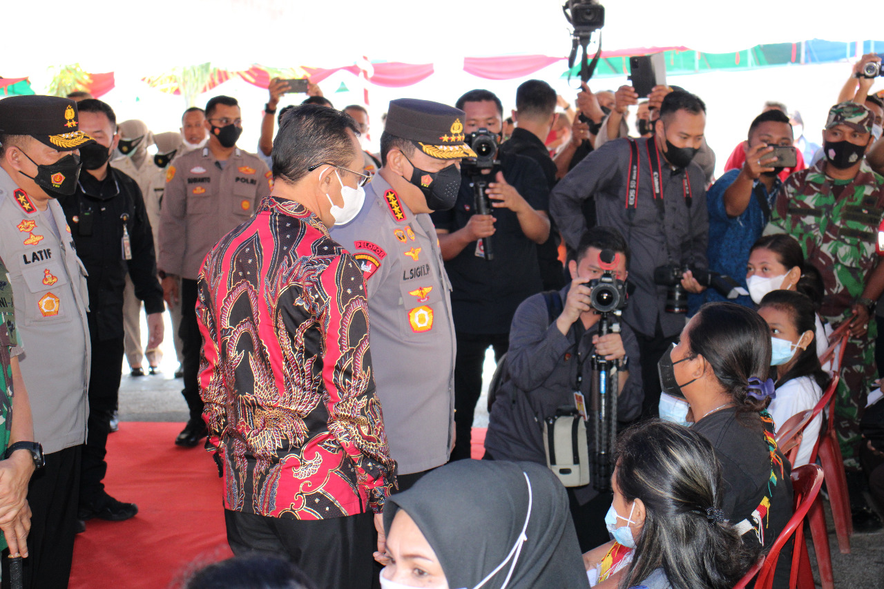 Tak berselang lama, Kapolri melanjutkan agendanya dengan meninjau vaksinasi massal anak di Lapangan Merdeka Ambon.