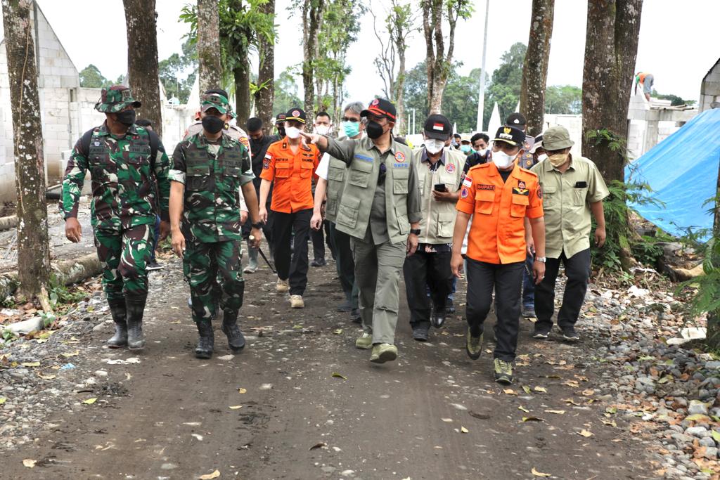LUMAJANG – Kepala Badan Nasional Penanggulangan Bencana (BNPB) Letjen TNI Suharyanto kembali meninjau progres pembangunan hunian tetap (tetap) dan hunian sementara (huntara) bagi masyarakat terdampak Awan Panas Guguran (APG) Gunungapi Semeru di Desa Sumbermujur, Kecamatan Candipuro, Kabupaten Lumajang, Jawa Timur, Selasa (15/2).