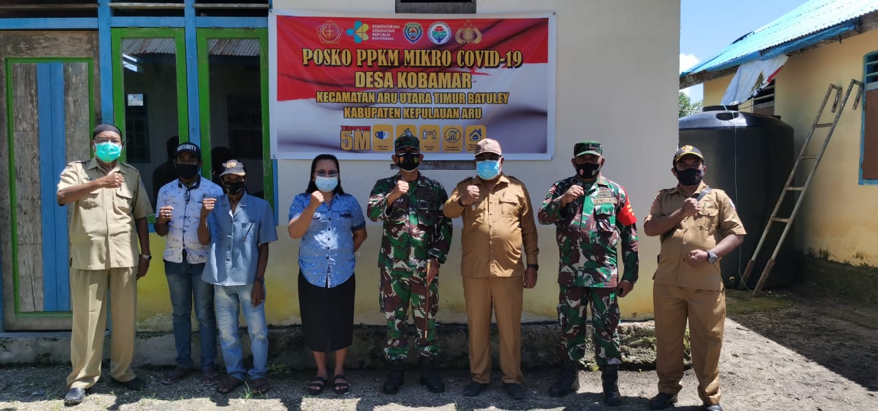 Usai lakukan sosialisasi, Danlanal Aru bersama Wakil Bupati Muin Sogalrey dan Forkopimda langsung peninjauan bersama Posko PPKM yang terletak rumah kantor kepala Desa Kobamar.