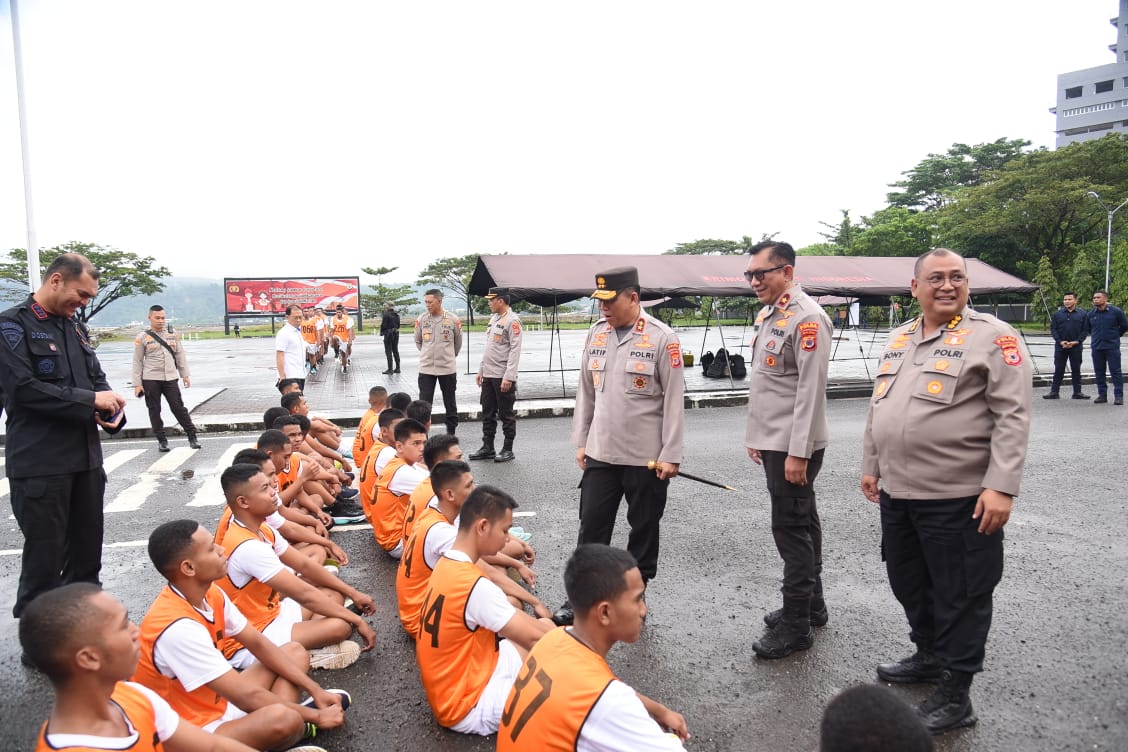 MALUKUEXPRESS.COM, POLDAMALUKU- Kepala Kepolisian Daerah Maluku Irjen Pol Lotharia Latif meninjau pelaksanaan Uji Kesamaptaan Jasmani, salah satu tahapan seleksi penerimaan Bintara Polri Tahun 2023. Kegiatan itu dilaksanakan di Lapangan Letkol Pol (Purn) CHR Tahapary, Kota Ambon, Senin (19/6/2023).