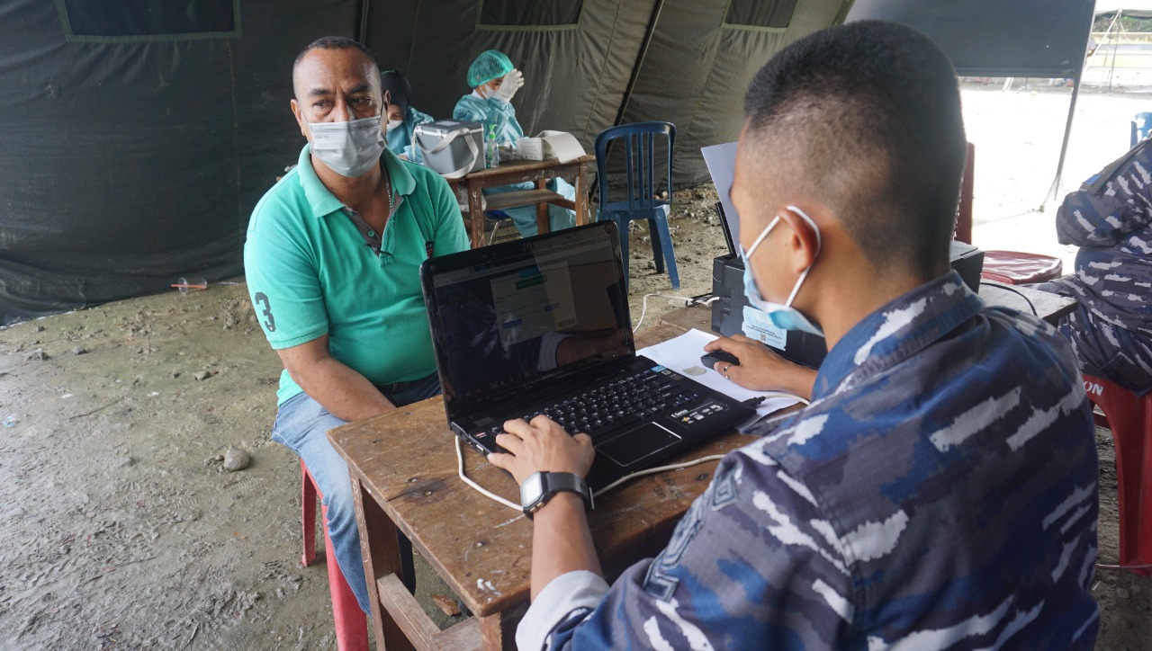 TNI Angkatan Laut. Masyarakat umum terutama warga pesisir wilayah Ambon terima Vaksinasi Covid-19 di Lapangan Rumkital dr. FX. Suhardjo Lantamal IX dari pukul 08.00 s.d. 12.00 WIT Pada hari Senin (13/09/2021).