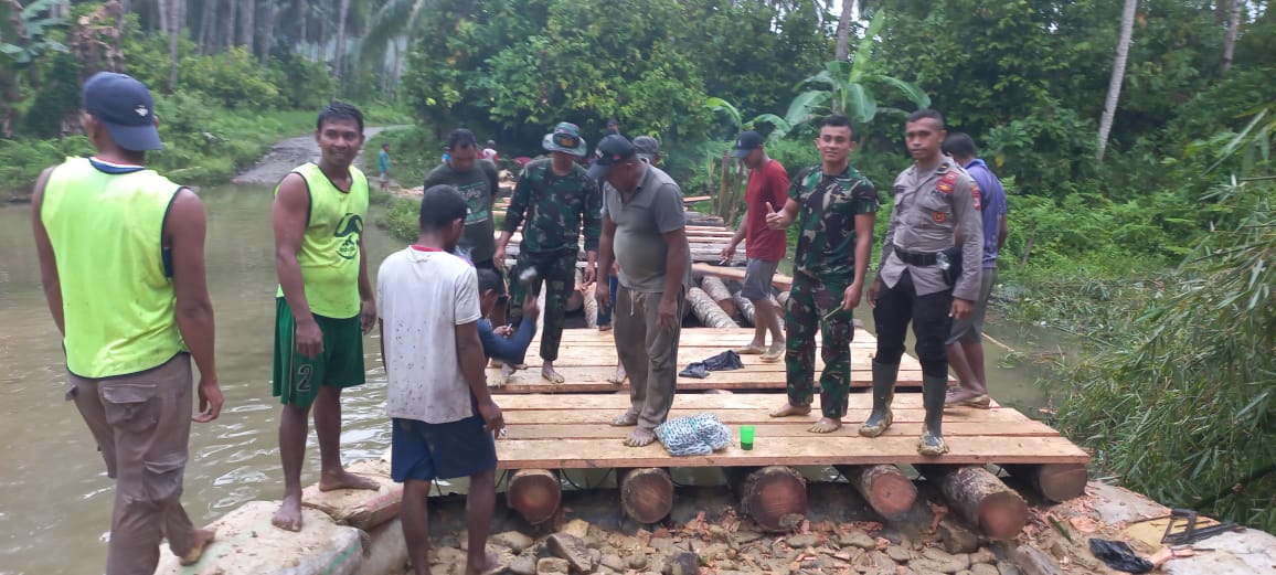 Selain melibatkan aparat TNI, Polri dan masyarakat, pembangunan jembatan darurat juga didukung oleh semua unsur Muspika di wilayah Kecamatan Waesama.