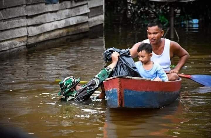 Malukuexpress.com, Jajaran Kodim 1205/Sintang terus membantu warga yang terdampak banjir di Kabupaten Sintang, salah satunya dilakukan Kopda Didik Babinsa Koramil 1205-07/Sintang yang harus rela masuk ke air untuk menyalurkan bantuan makanan siap saji di wilayah binaannya.
