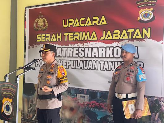 Dalam acara tersebut, Iptu JACOB RUNTUTHOMAS, S.Pd.K., secara resmi menyerahkan Jabatan Kasat Res Narkoba Polres Kepulauan Tanimbar kepada Iptu YONGKY SALAWANE yang sebelumnya menjabat sebagai Kaurbinopsnal Polres Maluku Tengah. Sedangkan, Iptu JACOB RUNTUTHOMAS, S.Pd.K., berpindah tugas menjadi Ps. Kasikum Polres Seram Bagian Barat.