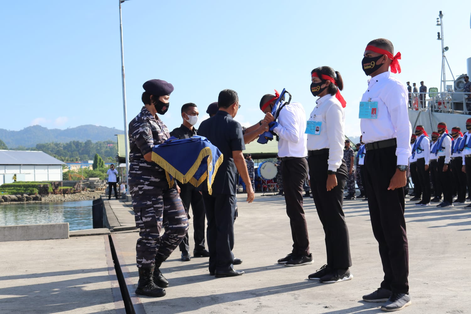 Malukuexpress.com, Wakil Gubernur Maluku Barnabas Nathaniel Orno, melepas 135 calon siswa (Casis) Bintara PK pria/wanita dan Tamtama PK TNI-AL angkatan ke-I Tahun 2022, dari dermaga TNI AL Tawiri Ambon menuju Satuan Pendidikan (Satdik) III, Komando Pembinaan Doktrin Pendidikan dan Latihan TNI Angkatan Laut (Kodiklatal) Sorong, Papua Barat untuk mengikuti seleksi panitia pusat. Sedangkan satu calon siswa lainnya diberangkatkan menuju Lapetal/Puslatdiksarmil, Surabaya, Selasa, (15/03/2022).
