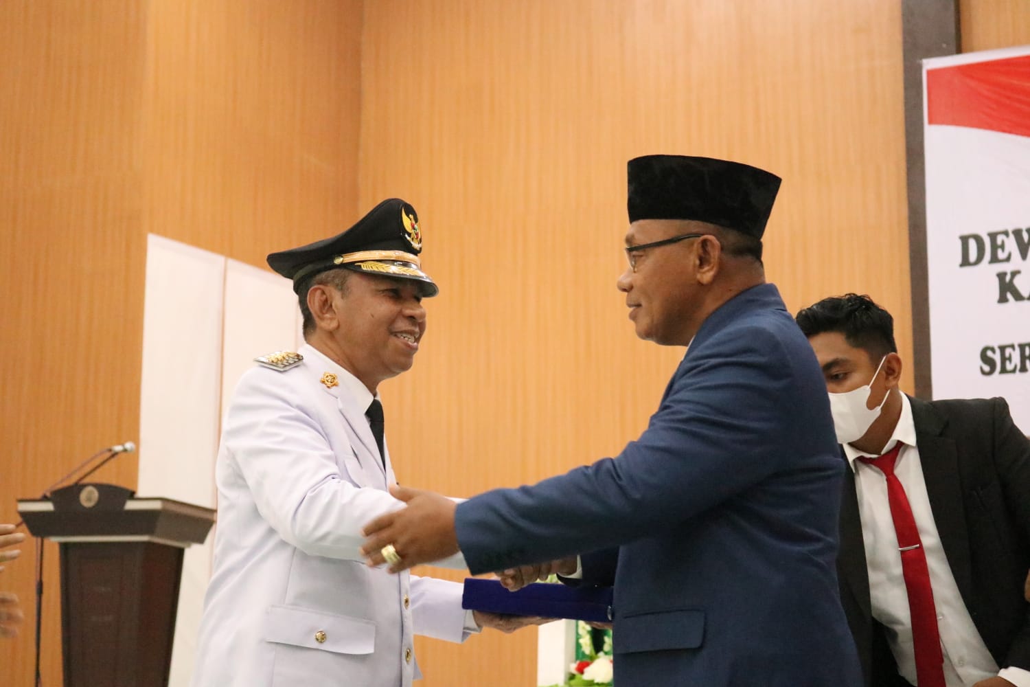 Malukuexpress.com, TANIMBAR- Wakil Gubernur Maluku, Barnabas Natanhiel Orno, menghadiri dan menyaksikan Rapat Paripurna Serah Terima Jabatan (Sertijab) Bupati Kabupaten Kepulauan Tanimbar (KKT) periode 2017-2022 Petrus Fatlolon kepada Penjabat Bupati Daniel E Indey, di ruang rapat paripurna DPRD Kabupaten KKT, Kamis (02/06/2022).