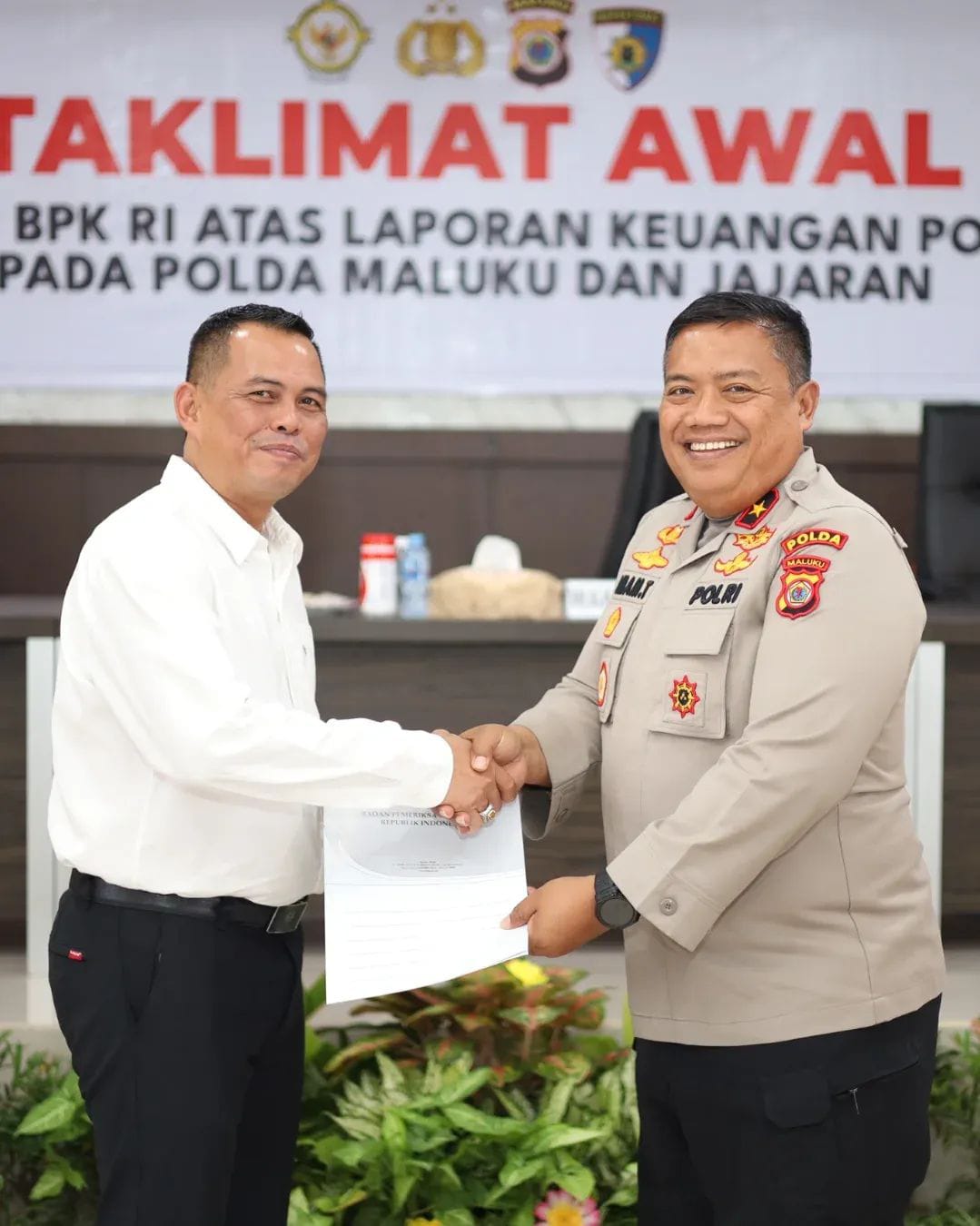 “Kehadiran tim BPK RI merupakan suatu kehormatan sekaligus kesempatan bagi kita untuk menerima koreksi maupun sumbangan pemikiran demi kemajuan Polda Maluku. Saya instruksikan para Kasatker, Kasubsatker, dan Kasatwil selaku objek pemeriksaan (Obrik) agar kooperatif dan memanfaatkan momen ini sebagai sarana konsultasi peningkatan kinerja,” tegas Wakapolda mengutip amanat Kapolda Maluku.
